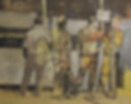 les scènes urbaines d'Afrique, du Canada et d'ailleurs, thèmes moteur de sa gestuelle picturale, lui offrent à foison des personnages, des objets, des grafitis; des couleurs surtout. Cependant, il rompt avec l'approche photographique attendue grâce à la particularité de sa technique d'écriture qui castre tout éclat lumineux. En effet, il refuse à faire pétiller sa peinture à l'huile. Cette dernière est traitée selon un art, dont il garde le secret, qui donne à sa touche des teintes mates à forte teneur de vieilli.